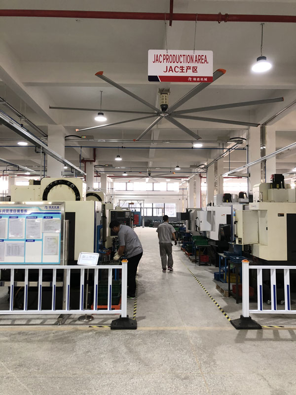 我公司生產(chǎn)的大型工業(yè)吊扇直接懸掛在廠房屋梁下,風力柔和,能加快車間空氣流通,有效降低車間內(nèi)溫度,改善車間空氣環(huán)境質(zhì)量,有利于員工的身體健康。